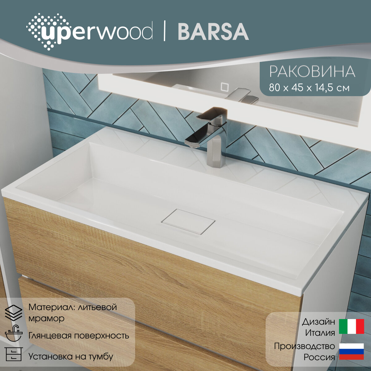 Раковина для ванной Uperwood Barsa 80х45х14,5 см, белая глянцевая информация: