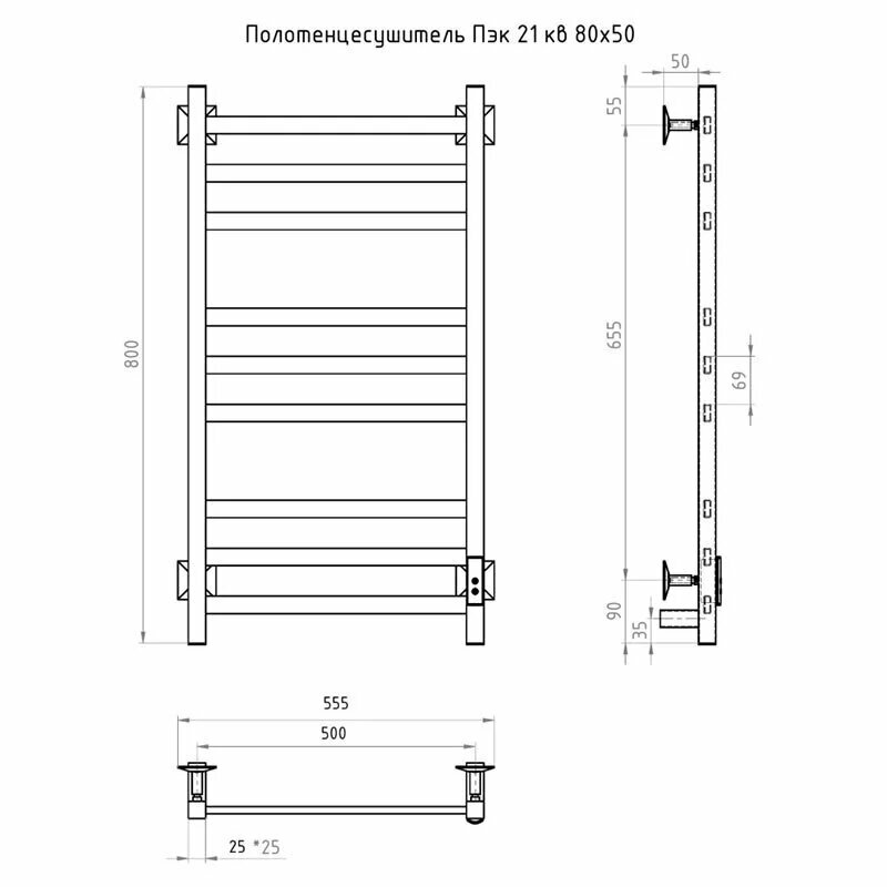 | Дополнительная информация | комплектация: полотенцесушитель, телескопические держатели, шнур с вилкой, паспорт изделия |