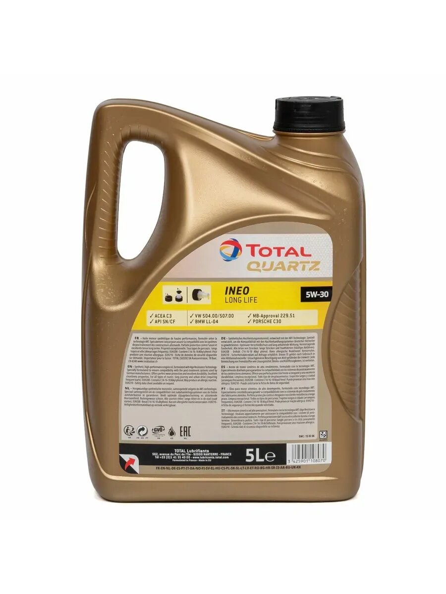 Масло моторное TOTAL QUARTZ INEO LIFE 5W30, синтетическое, 5л информация:
