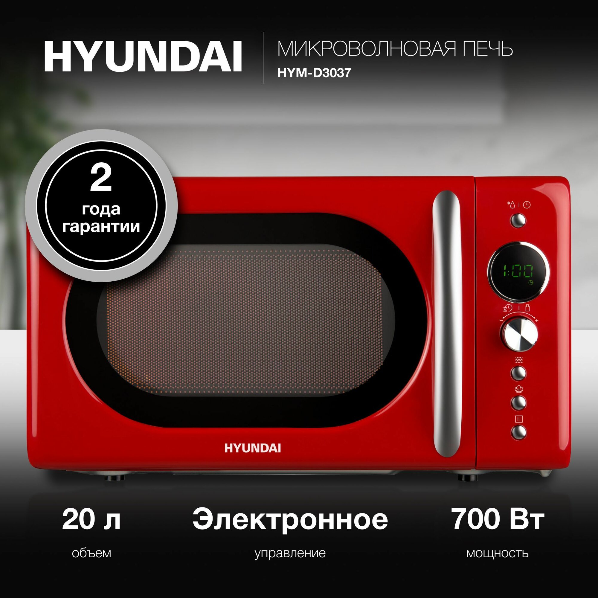 Отзывы на Микроволновая печь Hyundai HYM-D3037 красный, с механическим управлением, поворотным столом 24,5 см, объем камеры 20 л, мощность 700 Вт, открывание дверцы ручкой, функции разогрева и разморозки
