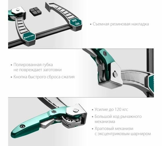 Струбцина KRAFTOOL KL-300/120 быстрозажимная 300/120 мм, тип F информация: