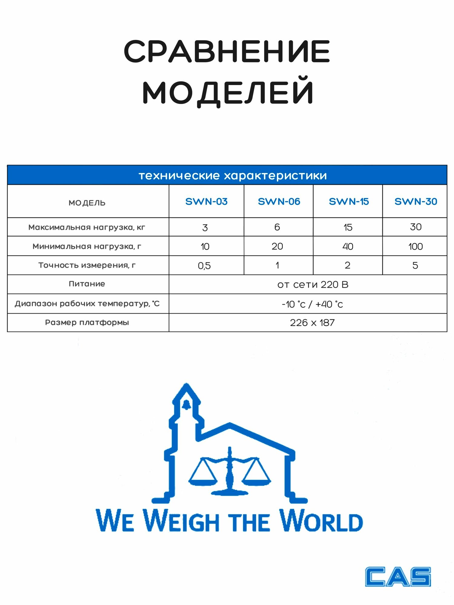 Весы порционные электронные CAS SWN-15 CW, влагозащитные, 15кг/2-5г, с акб информация: