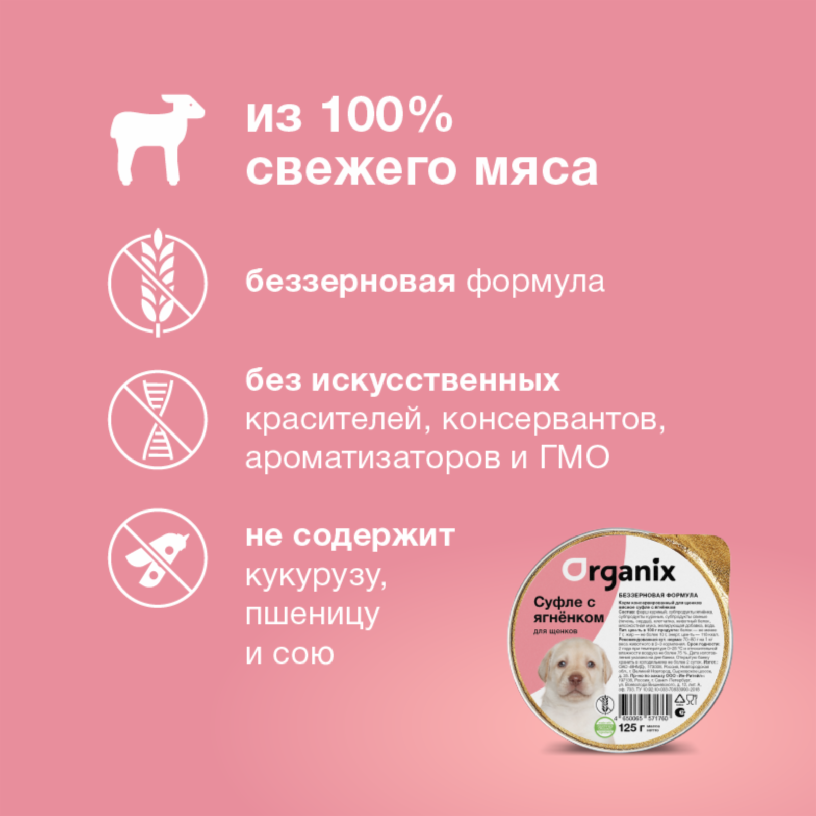 Organix консервы Мясное суфле для щенков с ягненком 11вн42 0.125 кг 19654 (2 шт) информация: