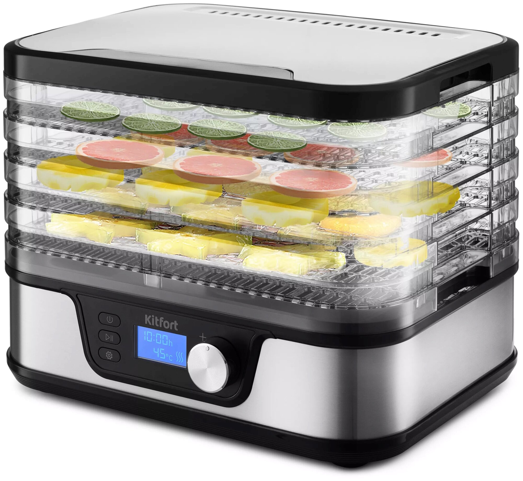 Электрическая сушилка Kitfort КТ-1918, 5 поддонов, серебристо-черная информация:
