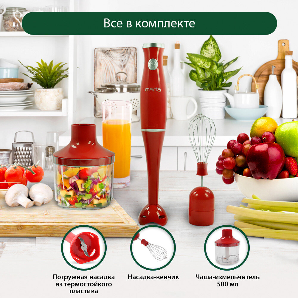 Блендер погружной кухонный комбайн MARTA MT-1570 красный коралл информация: