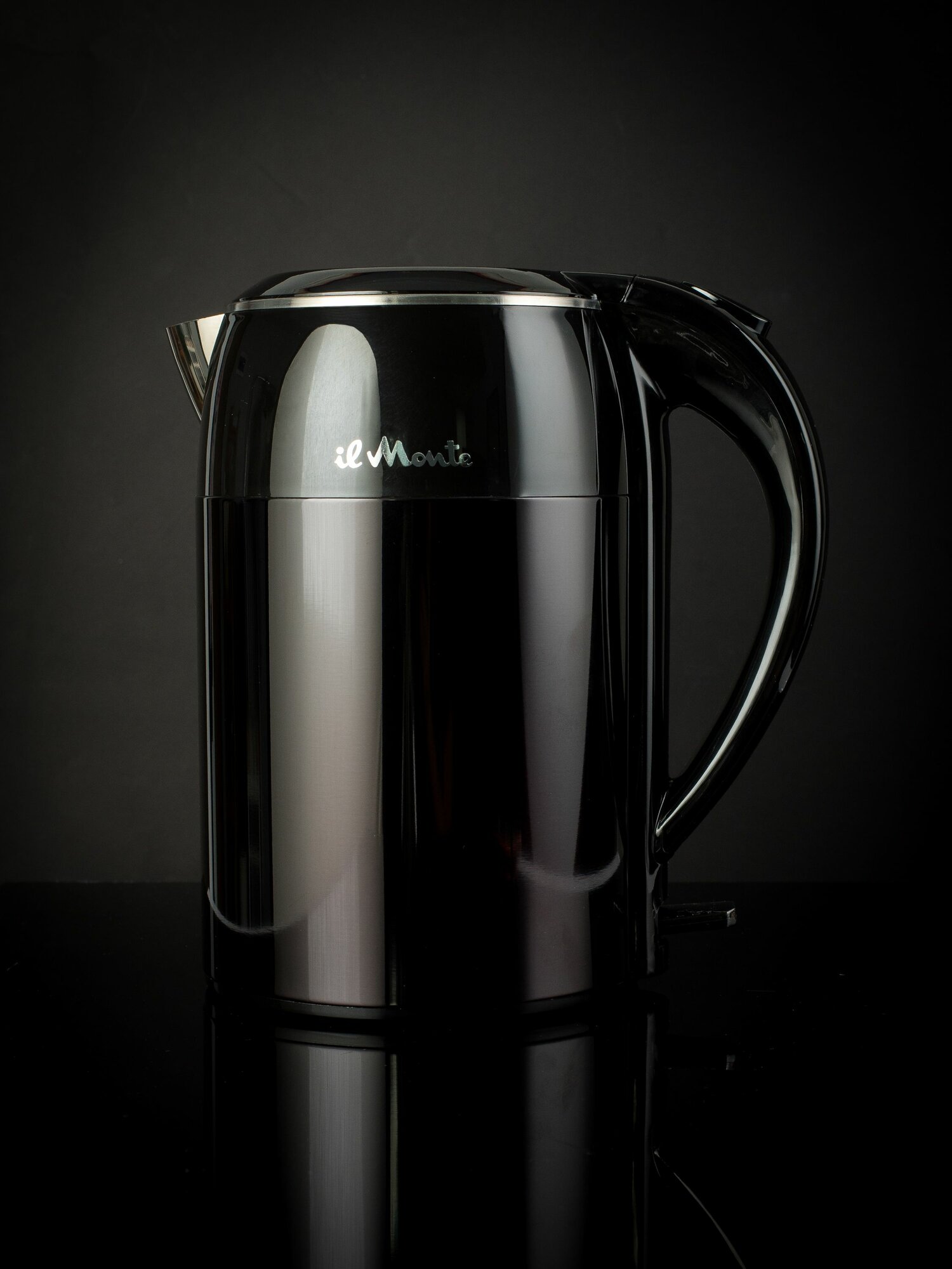 Чайник электрический Премиум с адиабатным покрытием, Контактная группа (электроника) STRIX, Не нагревающийся, Полностью из нержавеющей стали, Литая стальная колба внутри, Объем 1,8 л., il Monte EK-1801 ANTHRACITE