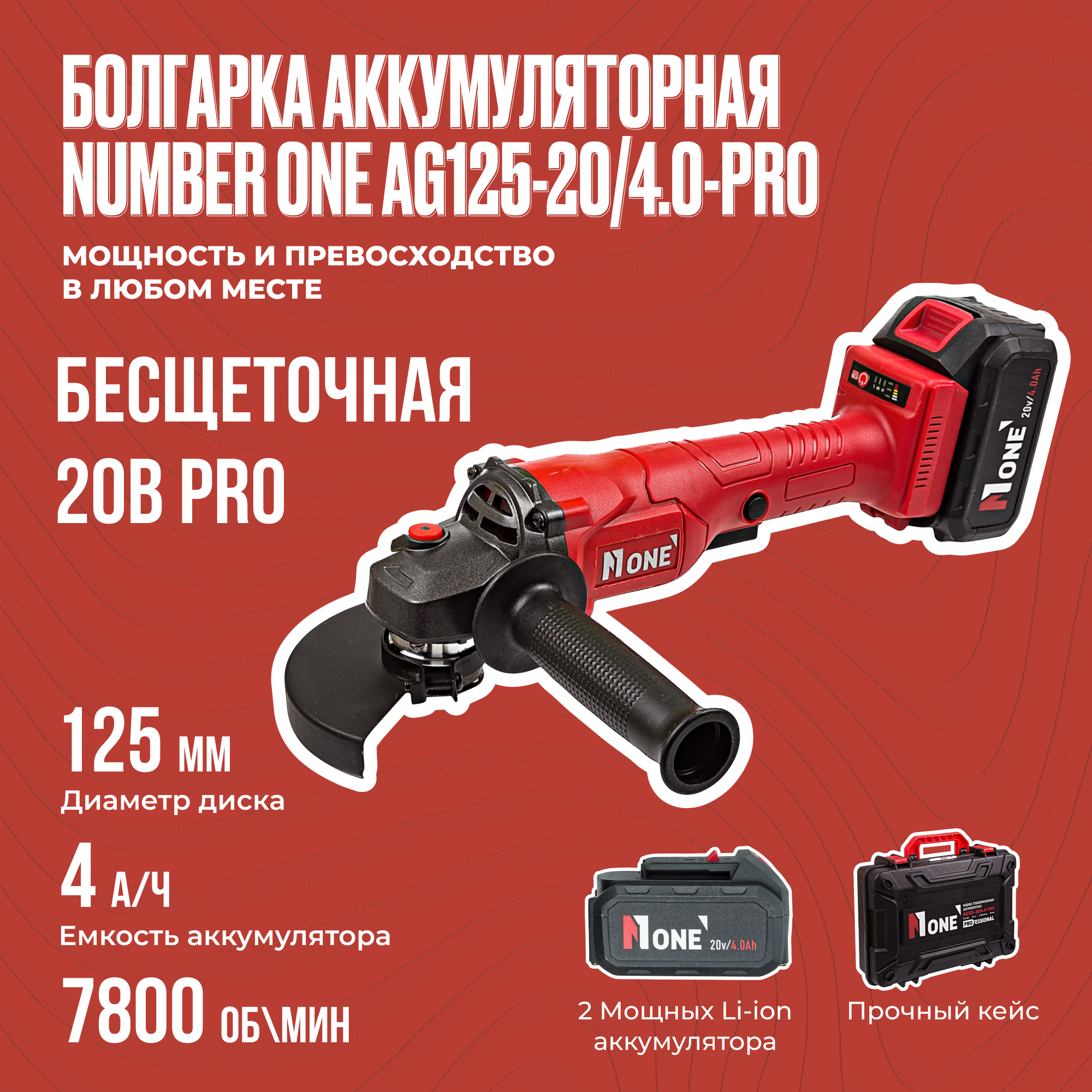10 цен на Аккумуляторная УШМ Number One AG125-20/4.0-PRO 125мм, электр. рег. обор,2акк,4А/ч, кейс