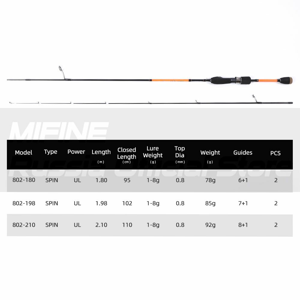 Отзывы на Спиннинг штекерный MIFINE SPEEDFLY SPIN 2.10м (1-8гр), рыболовный, удилище для рыбалки, карбон
