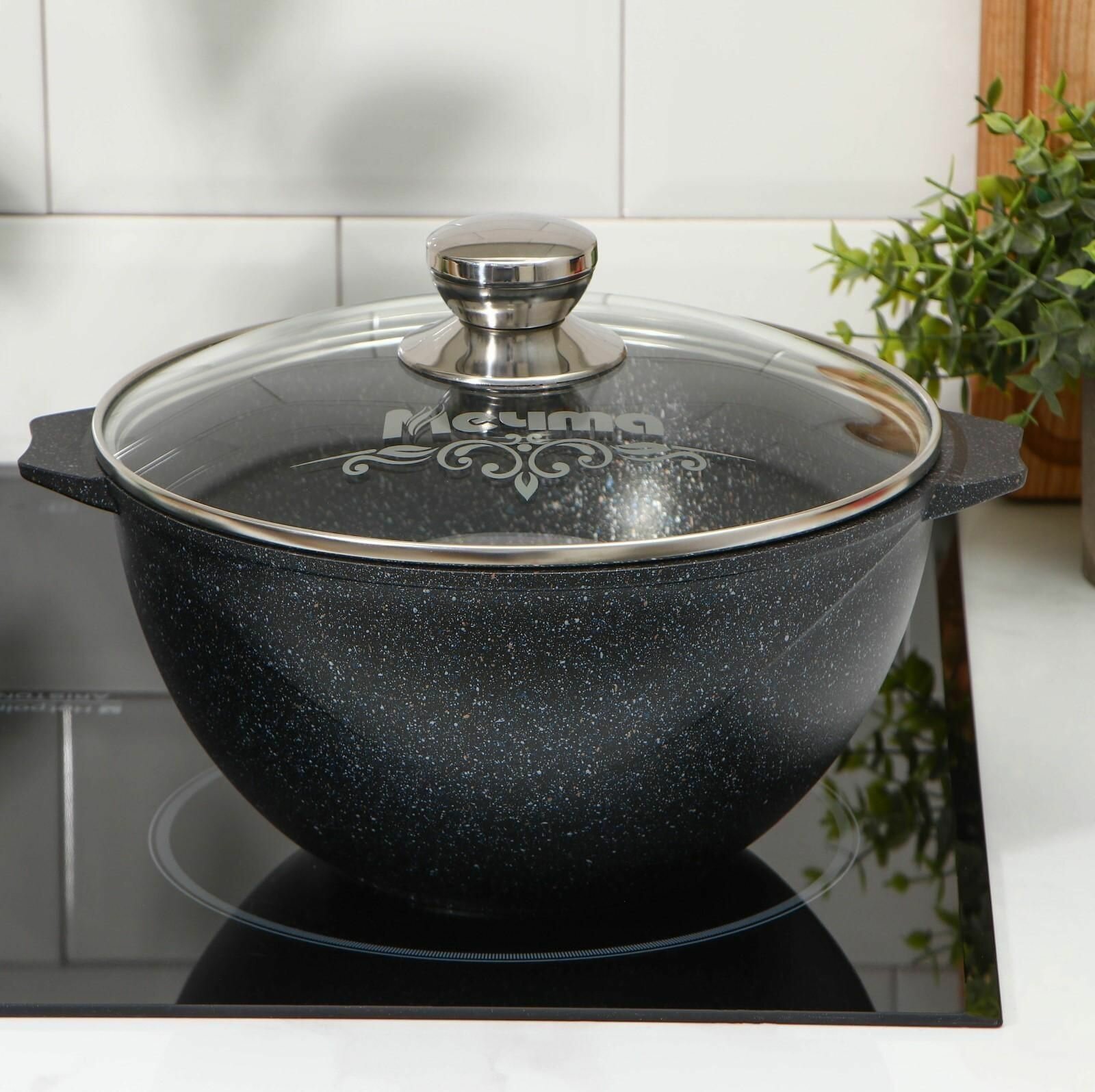 10 цен на Казан, 4 л, стеклянная крышка, литые ручки, антипригарное покрытие, цвет чёрный