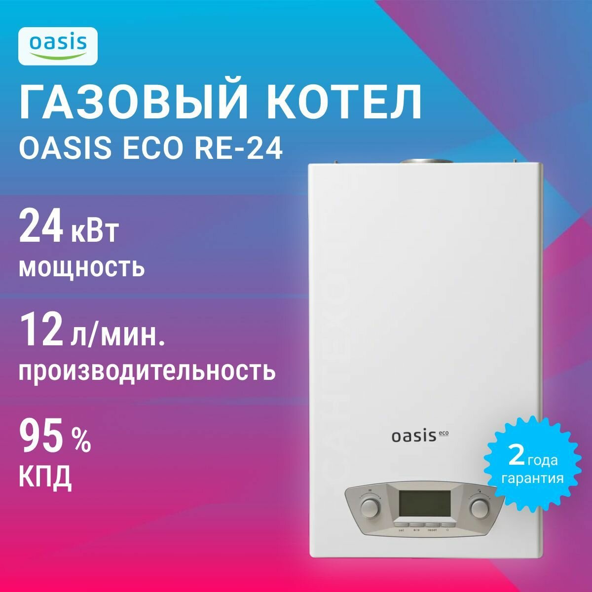 Газовый котел Oasis Eco RE-24, настенный, двухконтурный, закрытая камера сгорания информация: