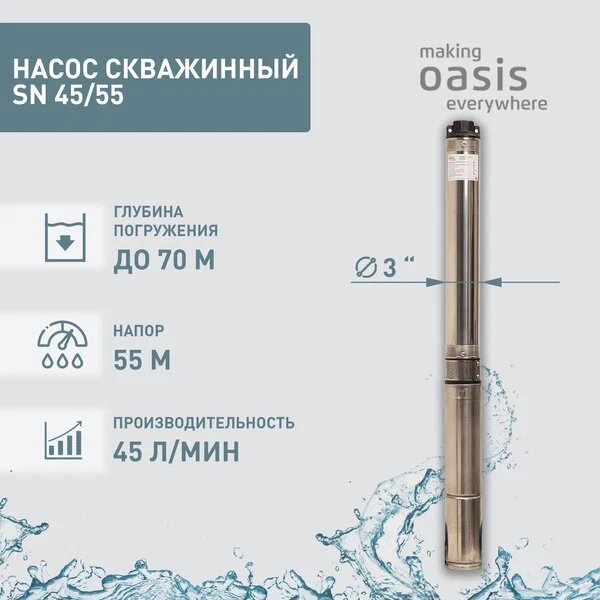 10 цен на Насос скважинный погружной Oasis SN 45/55, для воды