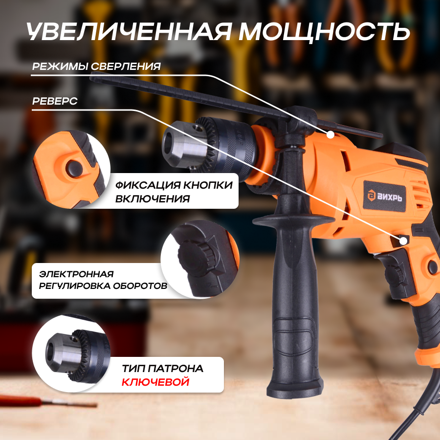 10 цен на Дрель ударная сетевая ДУ-25А-850 Вихрь, 850Вт, ключевой патрон, реверс