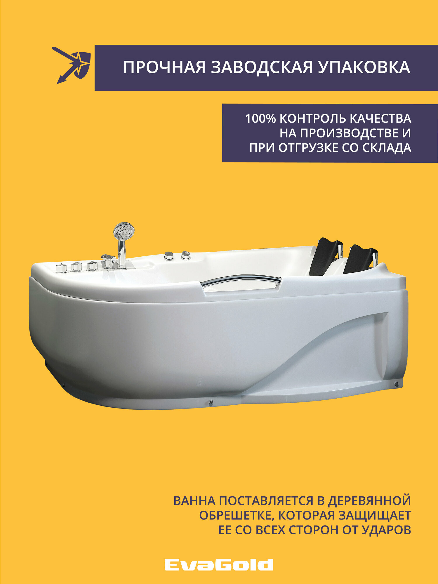 Гидромассажная ванна EvaGold правая 170х119х62, модель LP507.7 белый для ванной 121 120 ₽