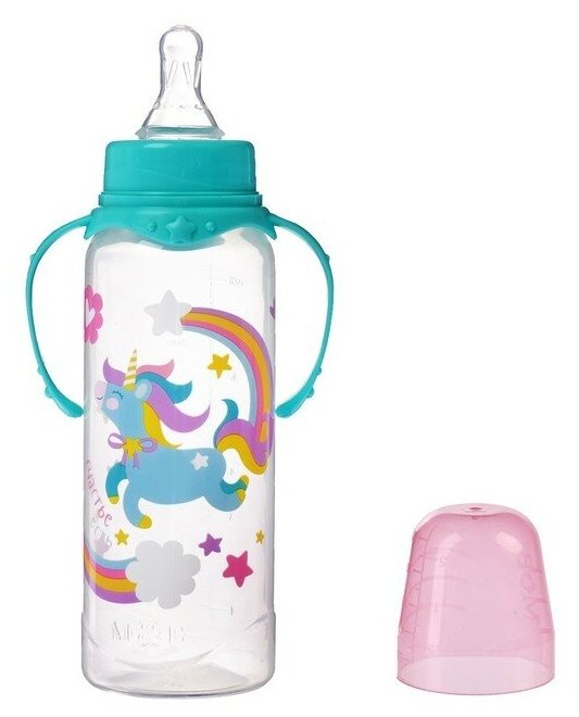 10 цен на Бутылочка для кормления «Волшебная пони» детская классическая, с ручками, 250 мл, от 0 мес, цвет бирюзовый