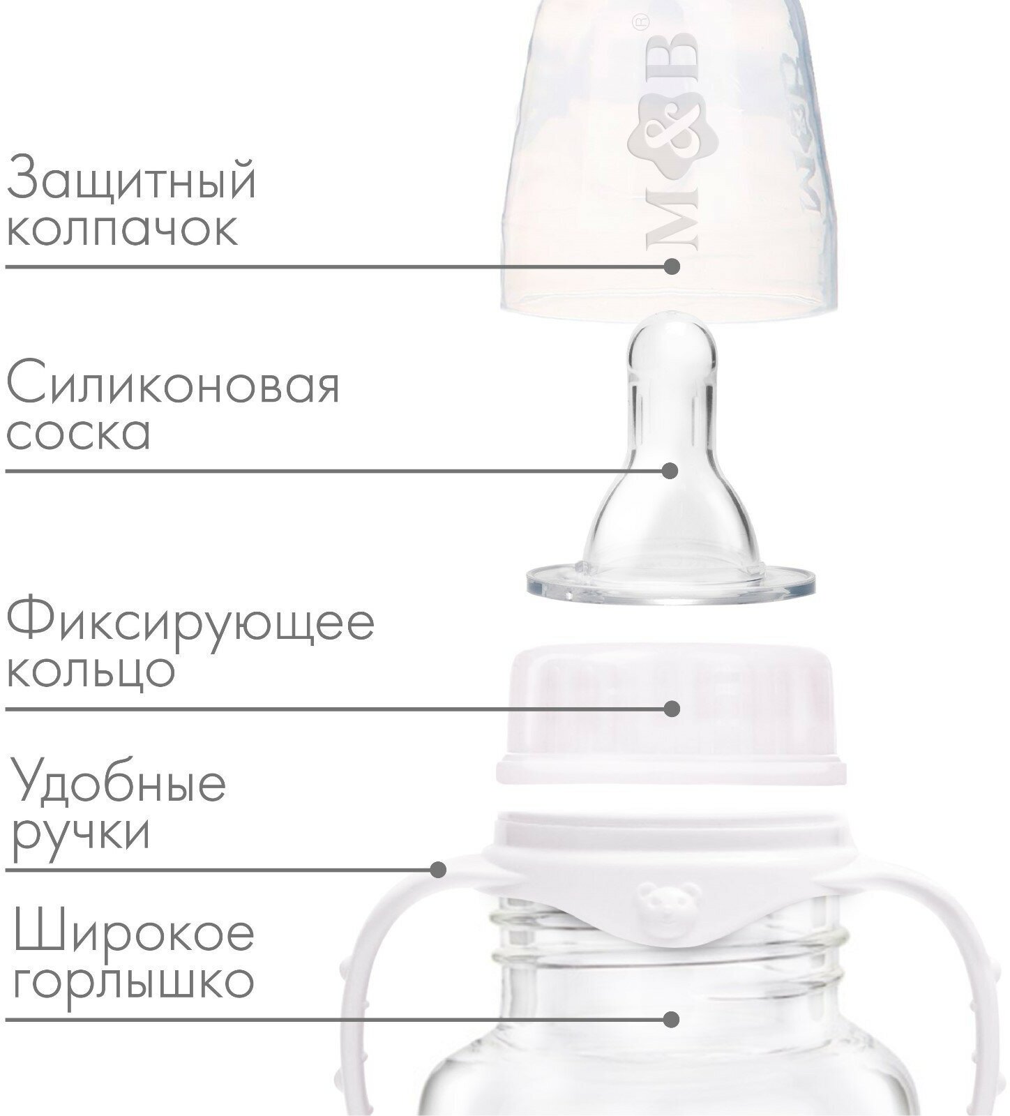 Бутылочка для кормления M&B, широкое горло, медленный поток, от 0 мес, 270 мл. информация: