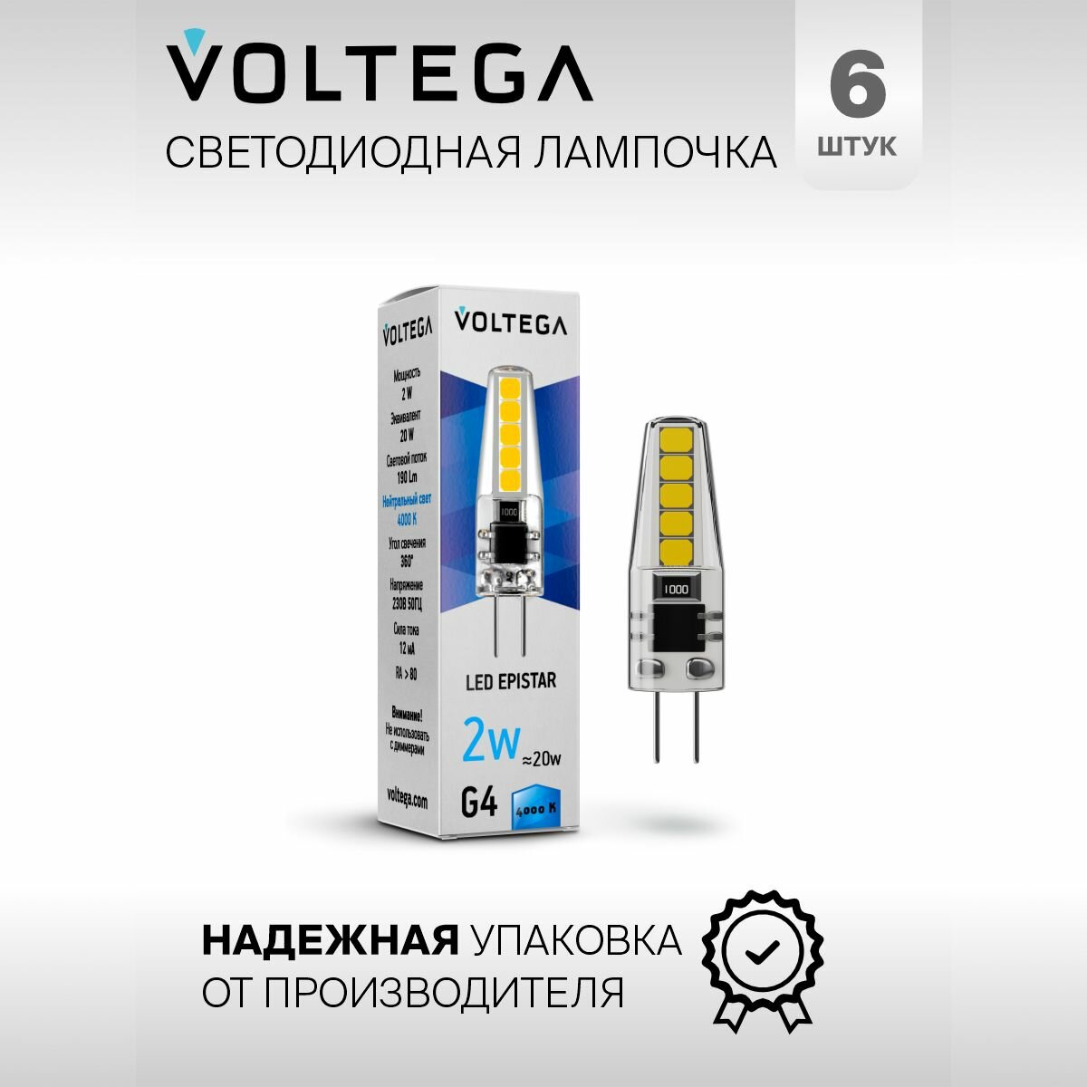 Лампочка светодиодная G4 форма капсула 2W нейтральный свет Voltega Simple Capsule 4000K упаковка 6 штук 1 200 ₽