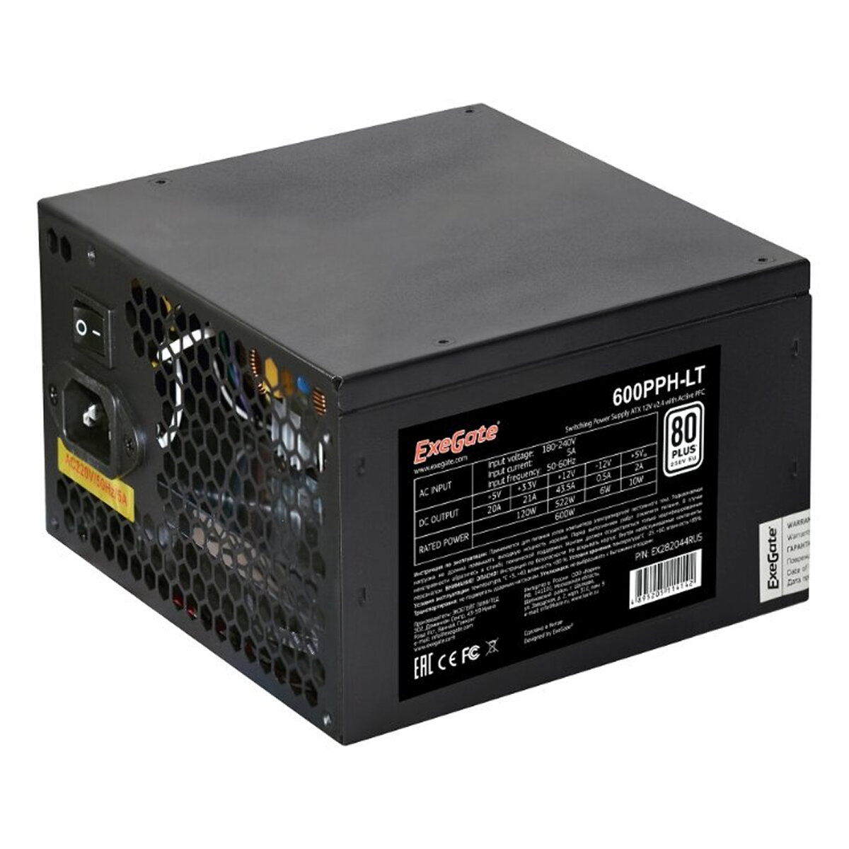 Блок питания ExeGate 600PPH-LT 80 PLUS 80+, 600 Вт, ATX, черный информация: