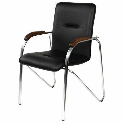 Отзывы на Кресло для приемных и переговорных «Samba», деревянные накладки, хромированный каркас, кожзам черный