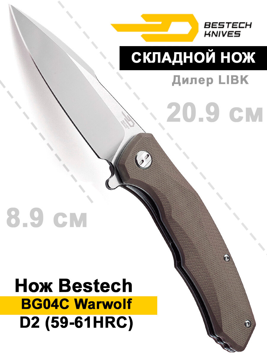 Нож Bestech Warwolf сталь D2, рукоять G10 бежевая, BG04C