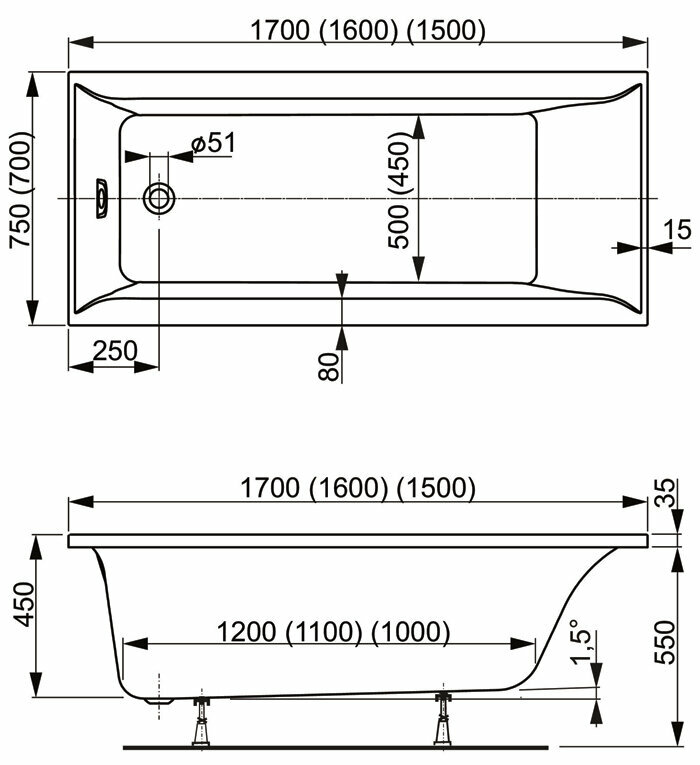 Ванна Gamma 140х70 см, акриловая, на каркасе, экран к ванне Gamma 140