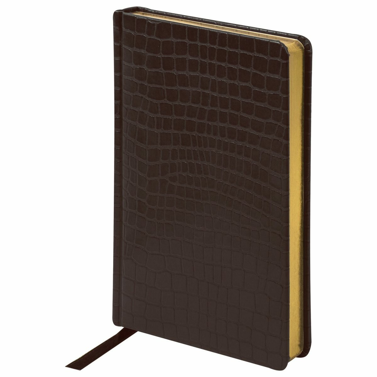 Ежедневник полудатированный А5 138х213мм BRAUBERG Alligator под кожу, 192л, коричневый, 124986