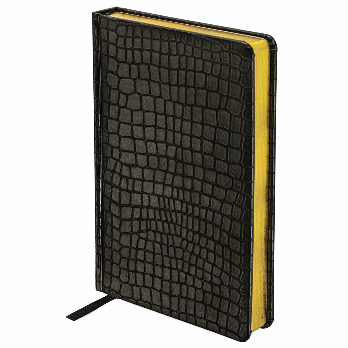 Ежедневник полудатированный А5 (138х213 мм) BRAUBERG "Alligator", под крокодиловую кожу, 192 л., крем. блок, золотой срез, черный, 124985