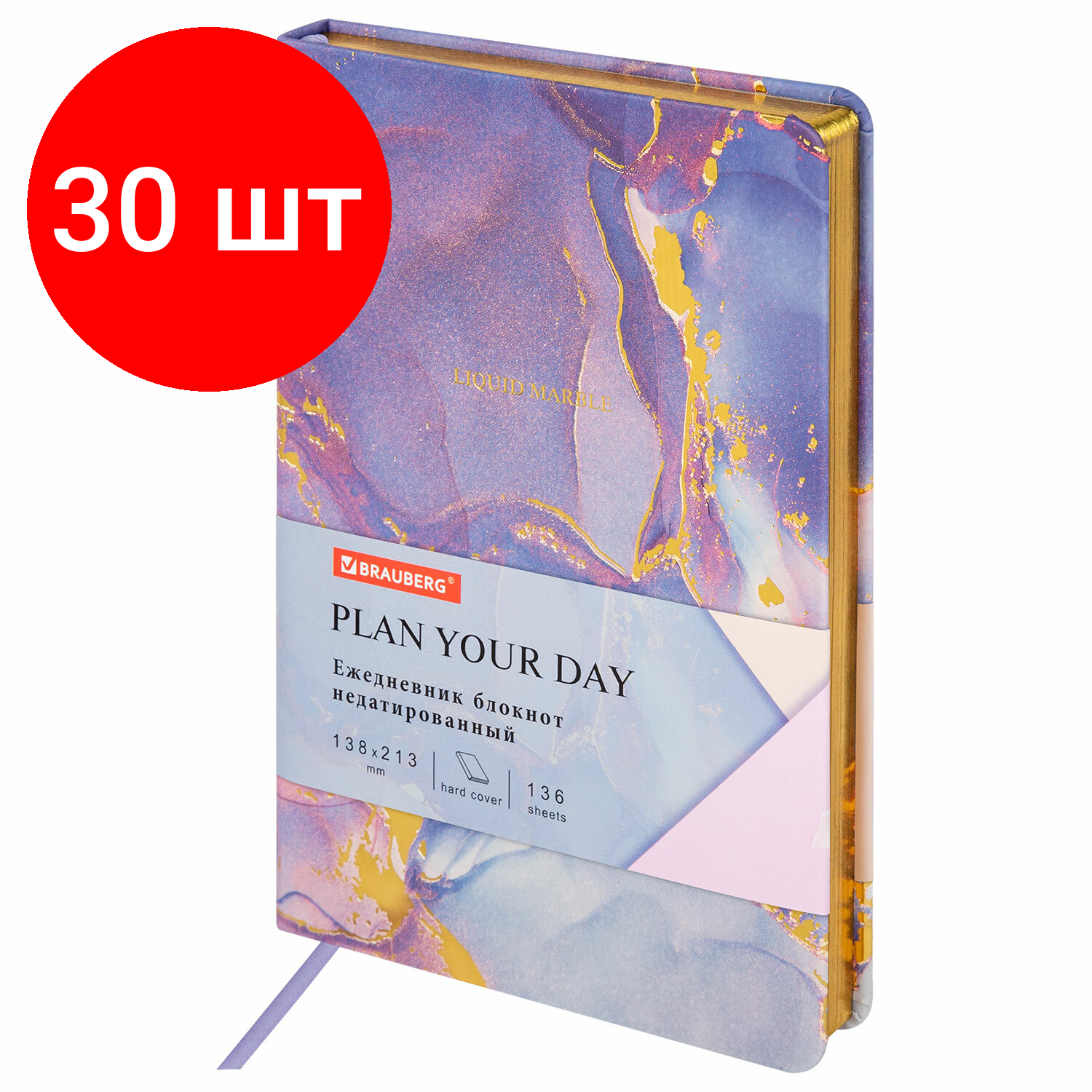 Комплект 30 шт, Ежедневник недатированный А5 (138х213 мм), BRAUBERG VISTA, под кожу, твердый, 136 л., "Marble", 112008 25 517 ₽
