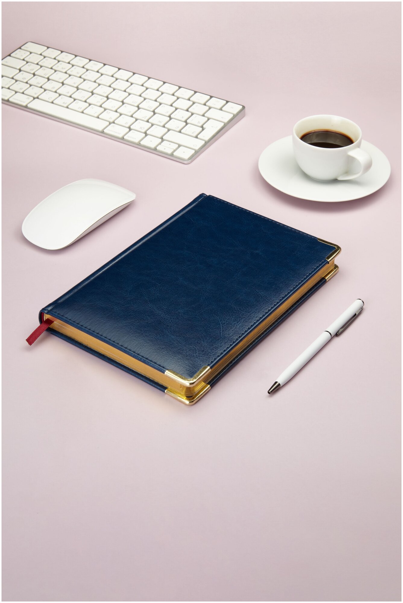 Ежедневник недатированный А5+, 136 листов Sidney Nebraska, твёрдая обложка, искусственная кожа, золотой срез, золотые уголки, синий