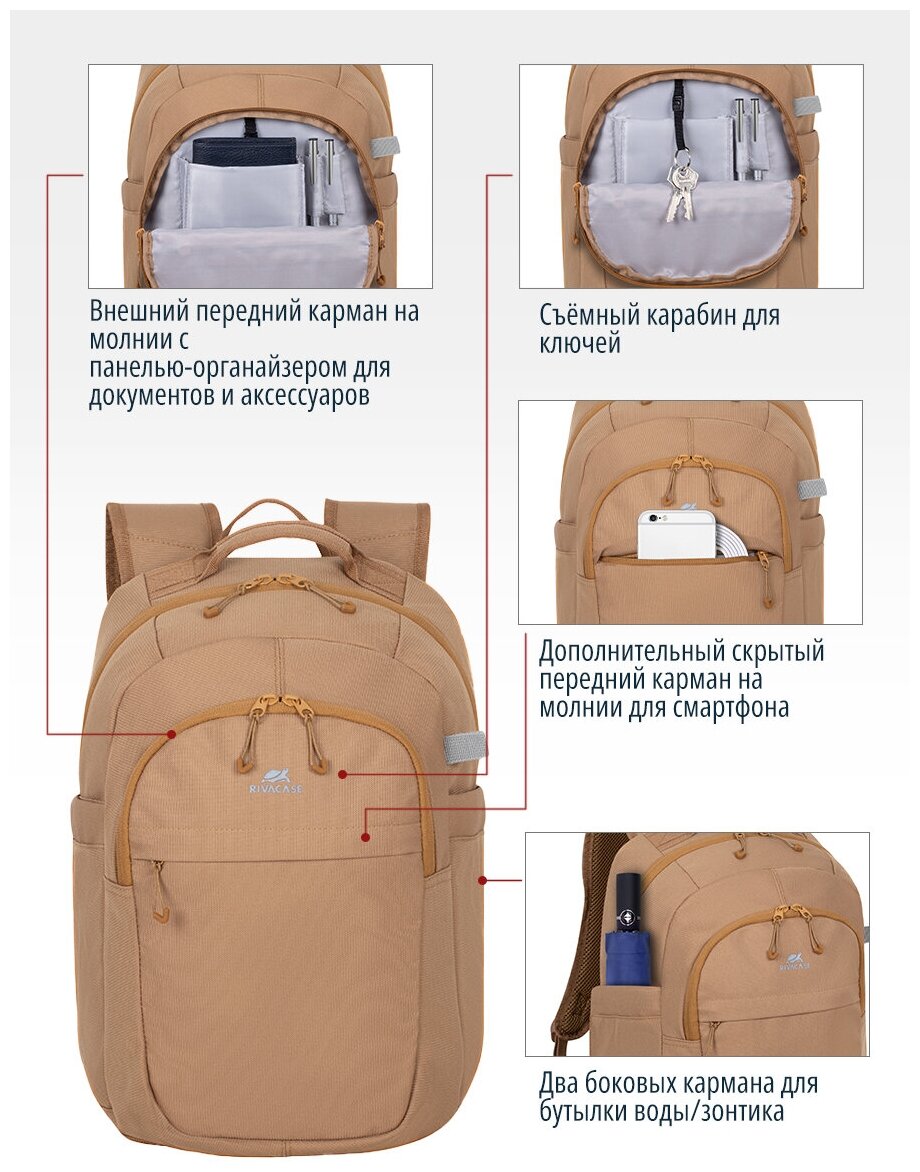 Городской рюкзак RIVACASE 5432 beige, 16л, водоотталкивающая ткань информация: