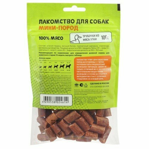 Лакомство TiTBiT Трубочки из мяса утки для собак мелких пород (100 г) информация: