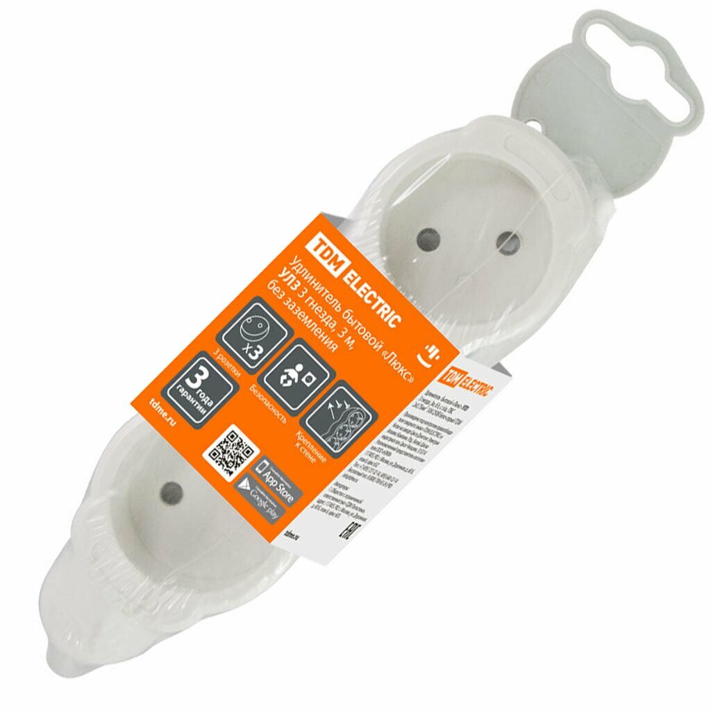 Удлинитель TDM Electric Люкс УЛ3, 3 гнезда, 3 м, без заземления информация:
