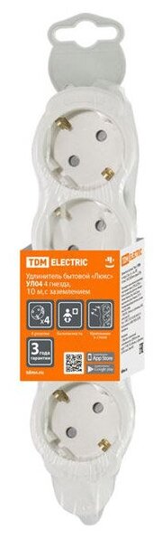 Удлинитель бытовой TDM Люкс SQ1303-0227 (белый, 4 розетки, 10A, 3м)