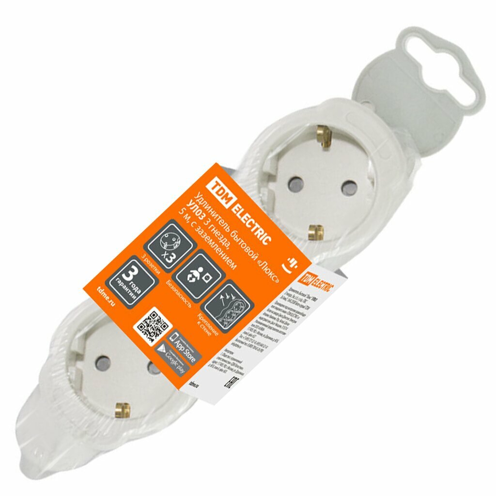 Удлинитель TDM Electric Люкс УЛ03 3 гнезда 5м с заземлением информация: