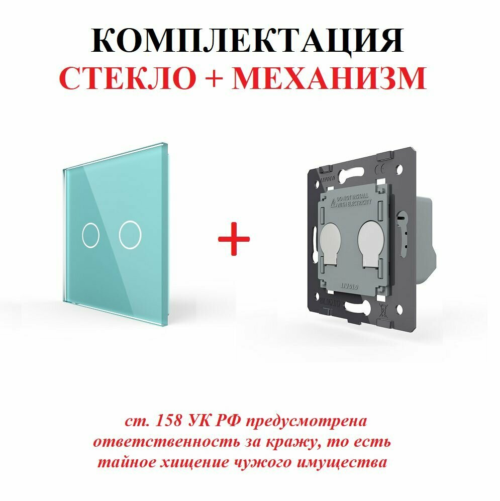 Выключатель сенсорный двухклавишный, 1 пост, цвет зеленый LIVOLO ORIGINAL информация: