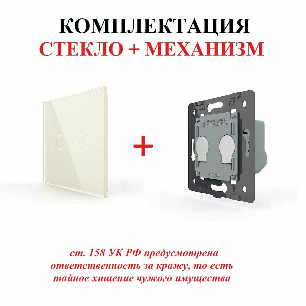 Выключатель сенсорный двухклавишный, 1 пост, цвет жемчужный LIVOLO ORIGINAL информация: