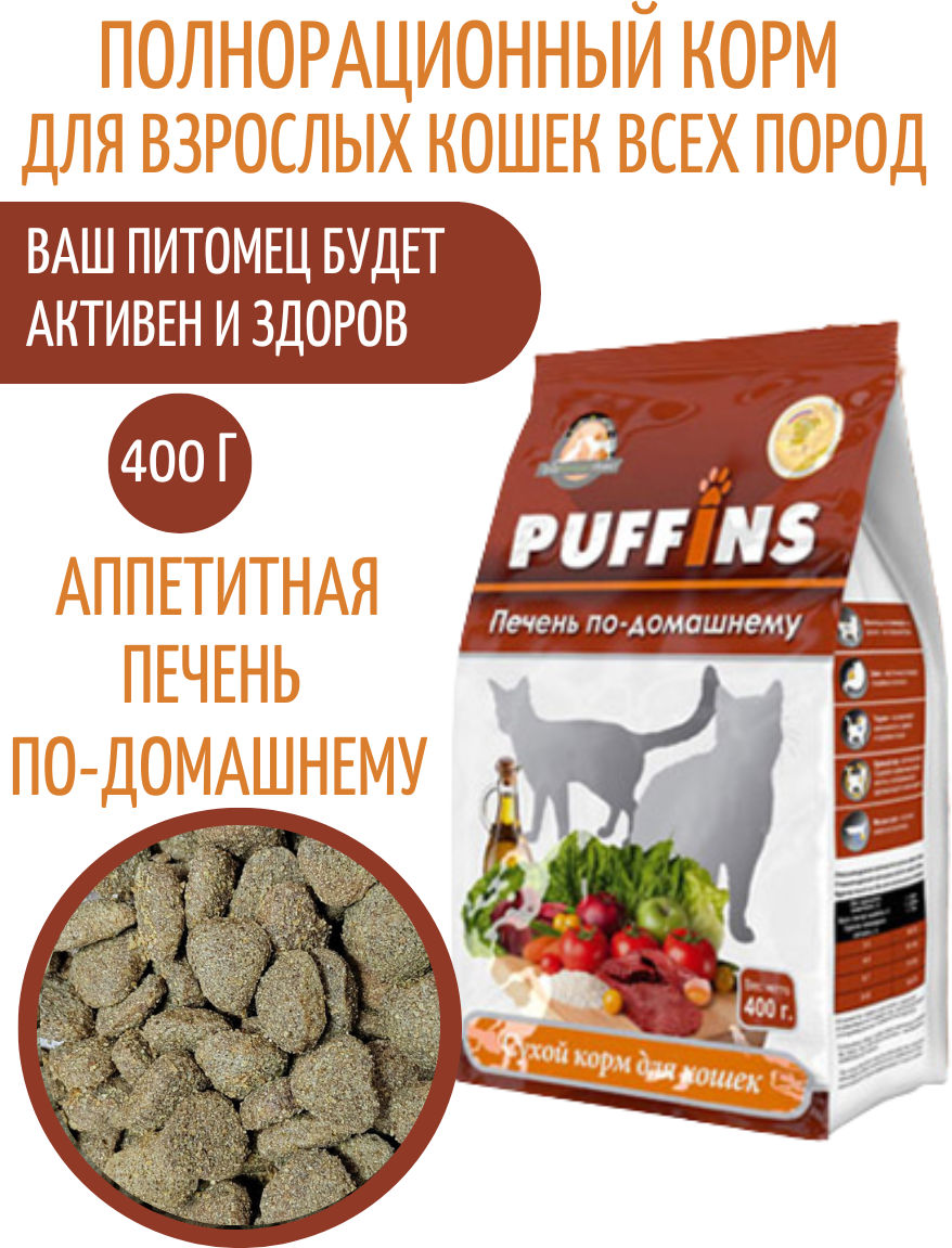 Puffins Сухой корм для кошек Печень по-домашнему, 400г 0.4 кг