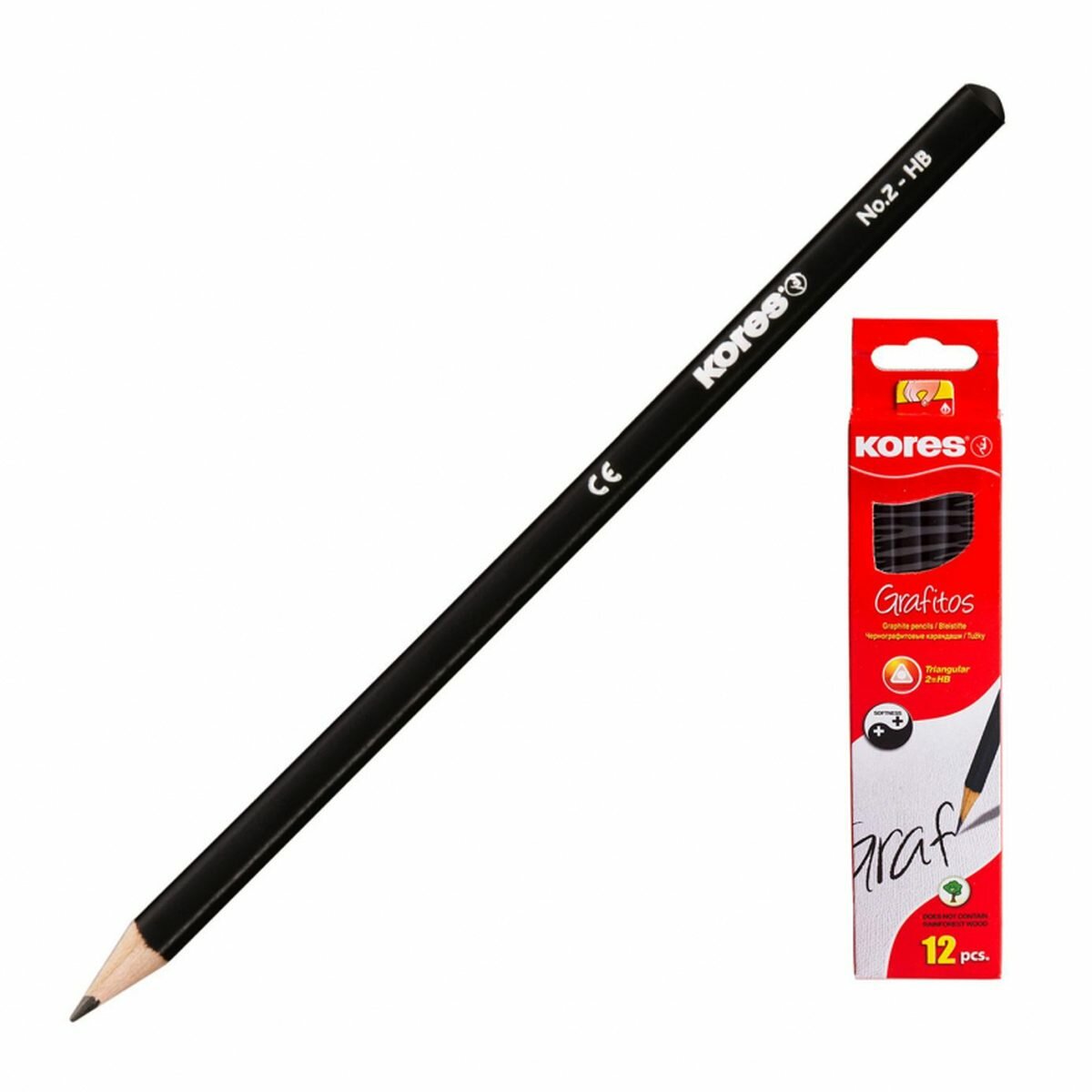 Kores Набор карандашей чернографитных трехгранных HB без ластика, 12 шт. (92301)