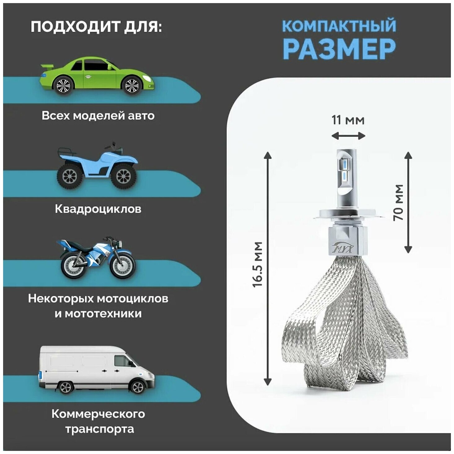 Светодиодные автомобильные LED лампы MYX K8 цоколь H7, с напряжением 12V и мощностью 25W, чип SMD, температура света 6000K, цена за комплект 2шт.