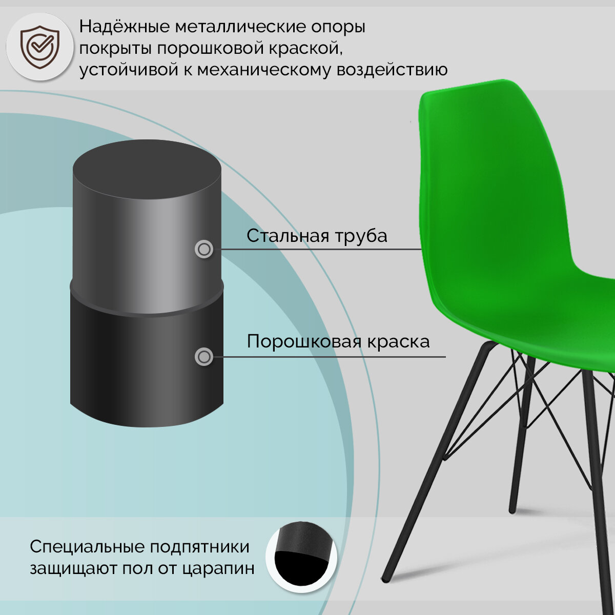 Стул Sheffilton SHT-ST29/S37 пластиковый, на металлическом каркасе, зеленый, нагрузка до 260 кг информация: