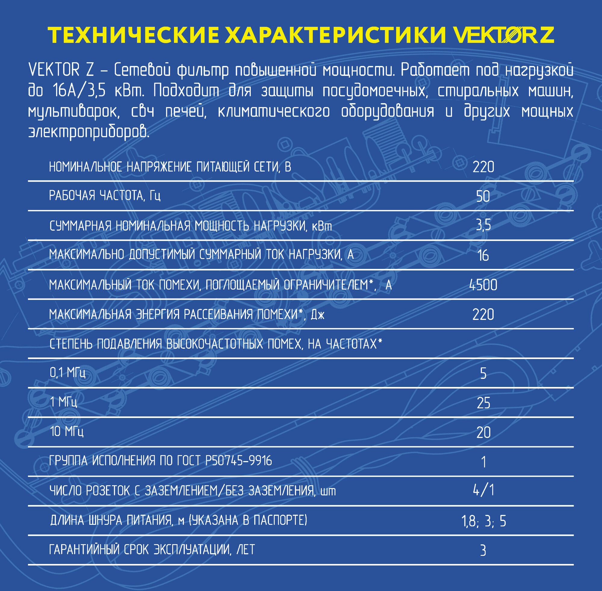 Сетевой фильтр Vektor Z NEW 3.5 кВт черный 1.8-2м 16525