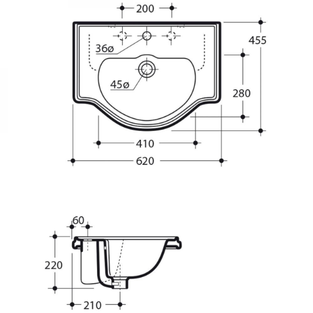 | Расположение отверстия под смеситель | в центре |
