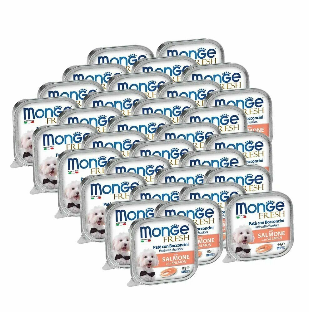 10 цен на Консервы MONGE FRESH DOG Монж для взрослых собак паштет с лососем 100 гр х 32 шт