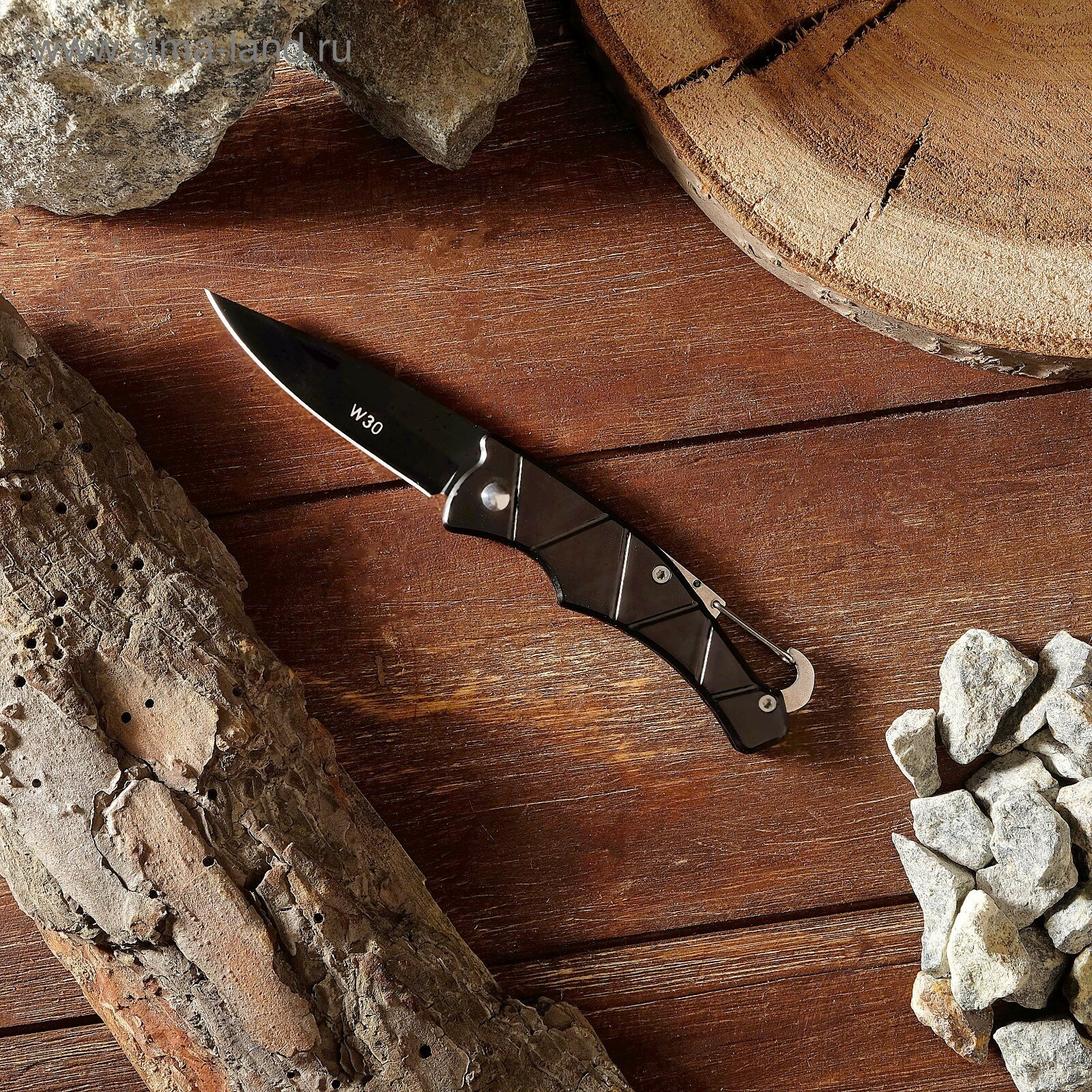 Нож складной "Разведчик" лезвие черное 6,4см, рукоять под черный металл, карабин, 15 см 2989518