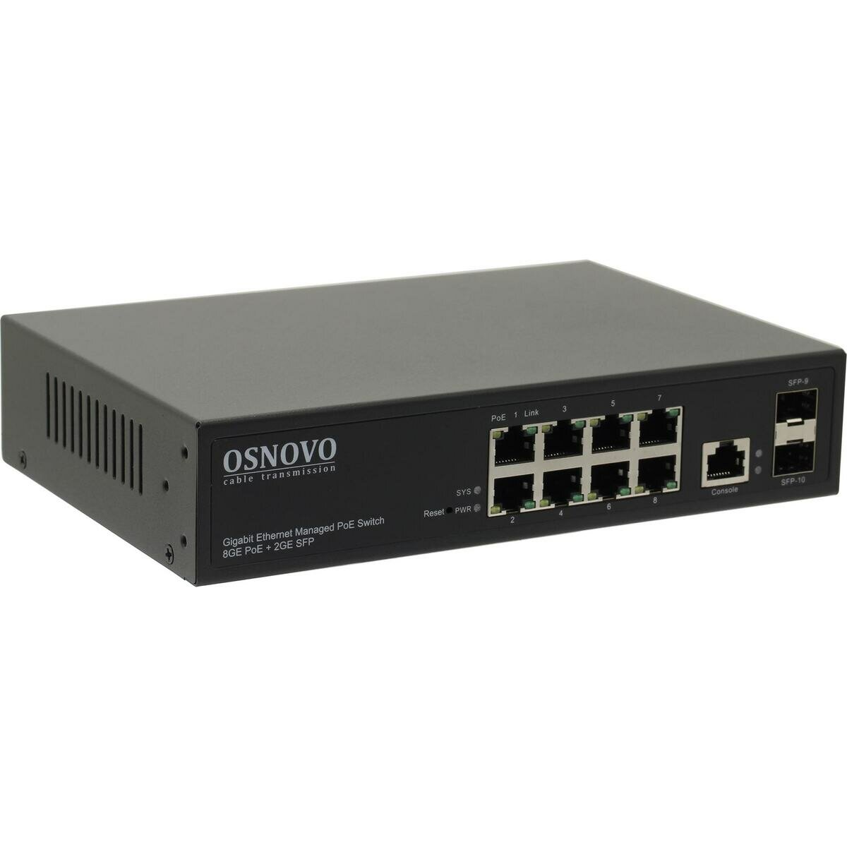 OSNOVO Гигабитный L2 PoE коммутатор на 10 портов, 8 *10/100/1000 Base-T PoE, 2*SFP 1000 Base-T, PoE на порт до 30W, суммарно до 150W 16 276 ₽