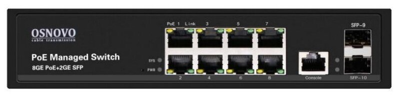 Управляемый L2 PoE коммутатор Osnovo SW-80802/L(150W) Gigabit Ethernet на 8 RJ45 PoE + 2 x GE SFP порта