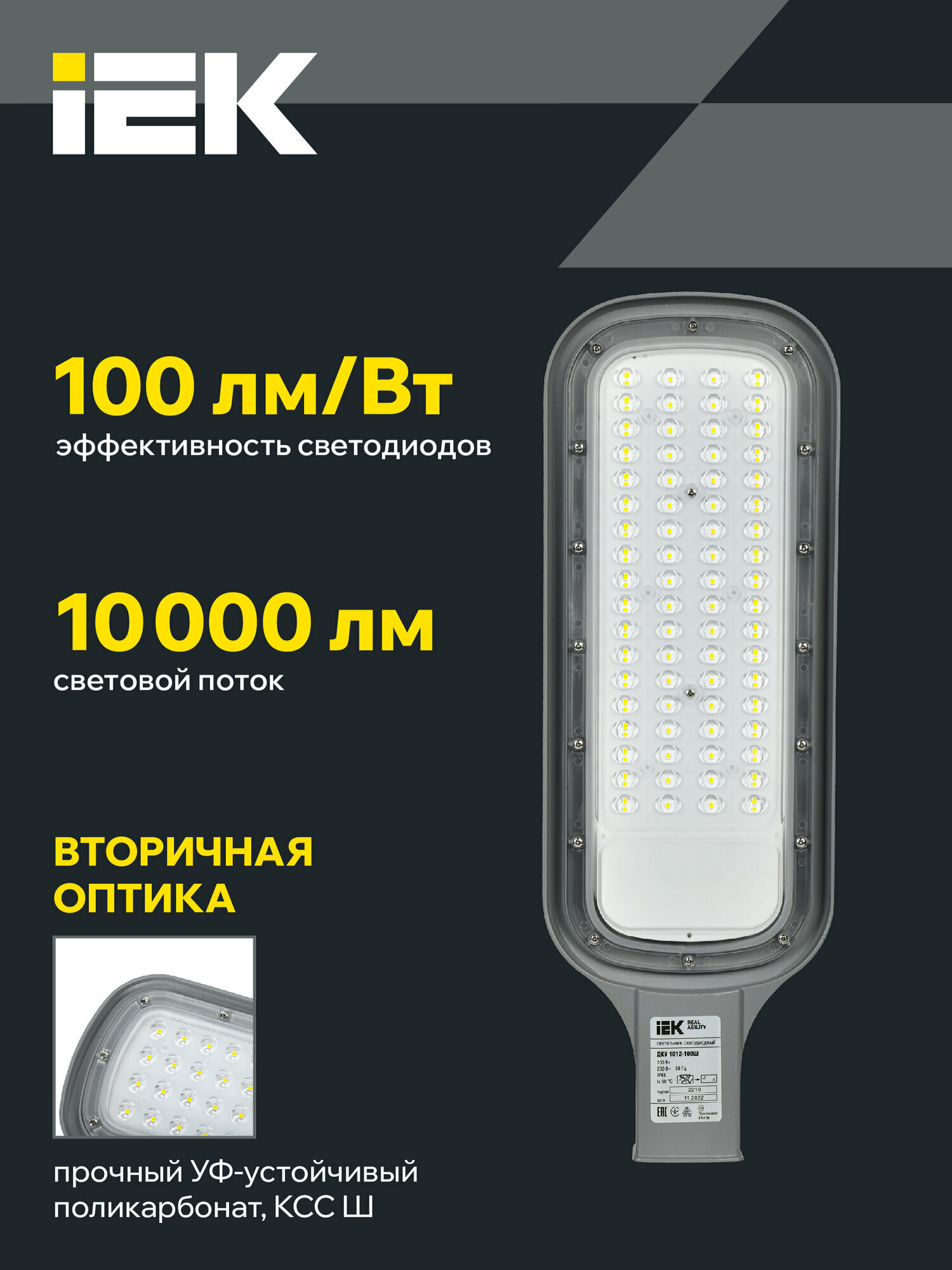 Светильник светодиодный ДКУ 1012-100Ш 5000К, IP65, серый, IEK информация: