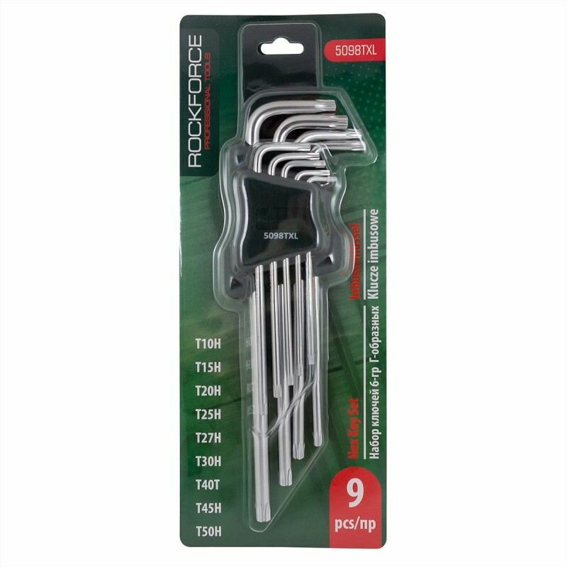 Набор ключей Г-образных TORX экстра длинных, 9пр. (Т10Н, Т15Н, Т20Н, Т25Н,Т27Н, Т30Н, Т40Т, Т45Н,Т50Н с отверстием) в пластиковом держателе Rock FORCE RF-5098TXL