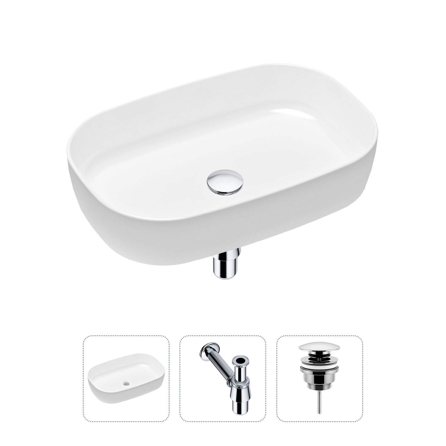 Накладная раковина в ванную Lavinia Boho Bathroom Sink 21520058 в комплекте 3 в 1: умывальник белый из фарфора 54 см, донный клапан click-clack в цвете хром, металлический сифон в цвете хром информация: