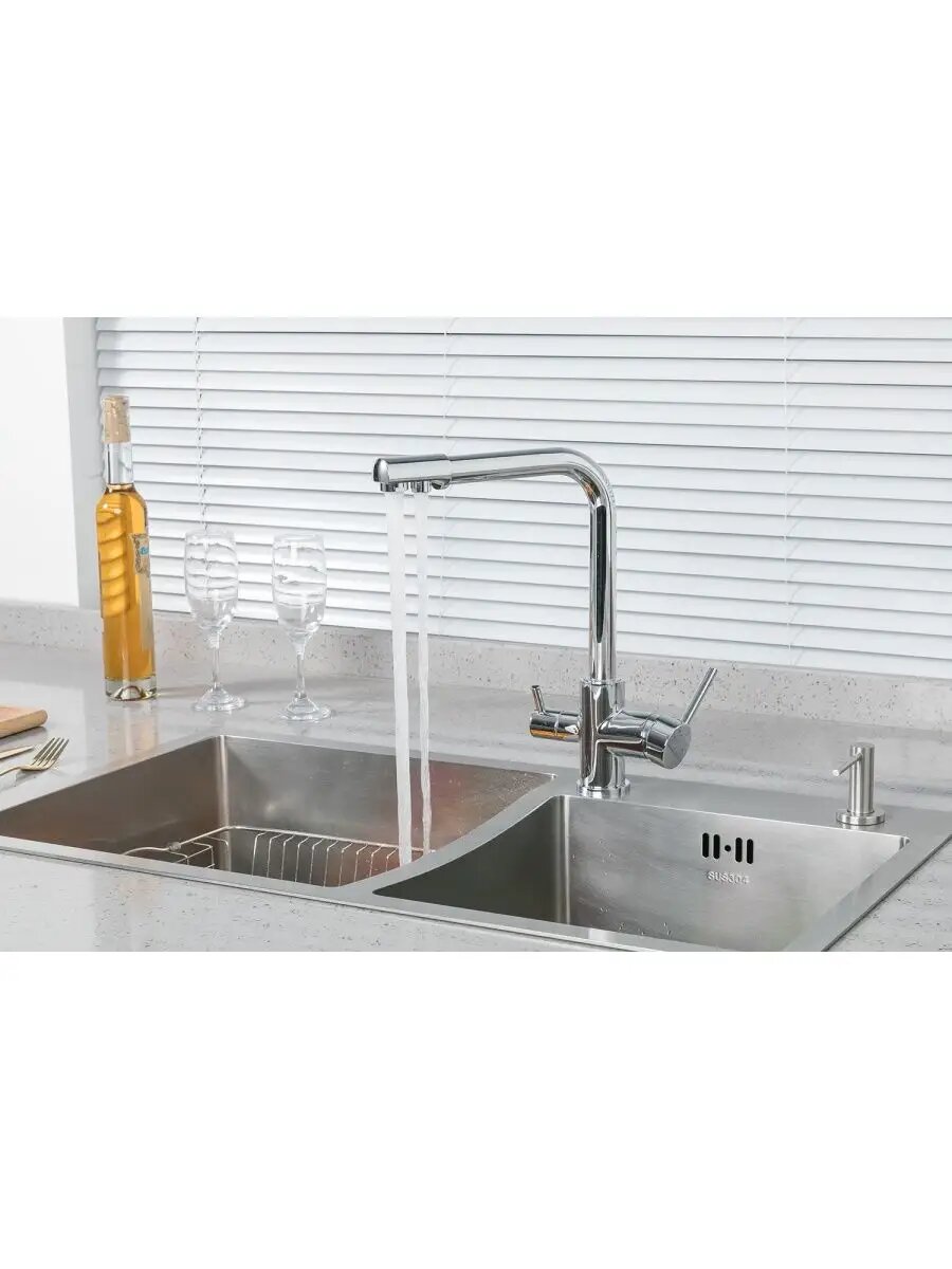 Смеситель для кухни с подключением к фильтру с питьевой водой из нержавеющей стали SUS304 Calorie CAL50116-3