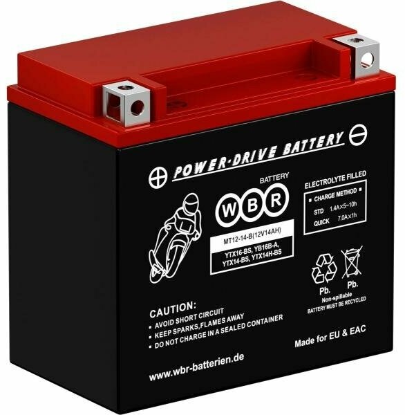 Аккумулятор WBR SMT 12-14-B для мототехники (12В, 14Ач/ стартерный ток 200А) YTX14H-BS, YTX16-BS , YB16B-A информация: